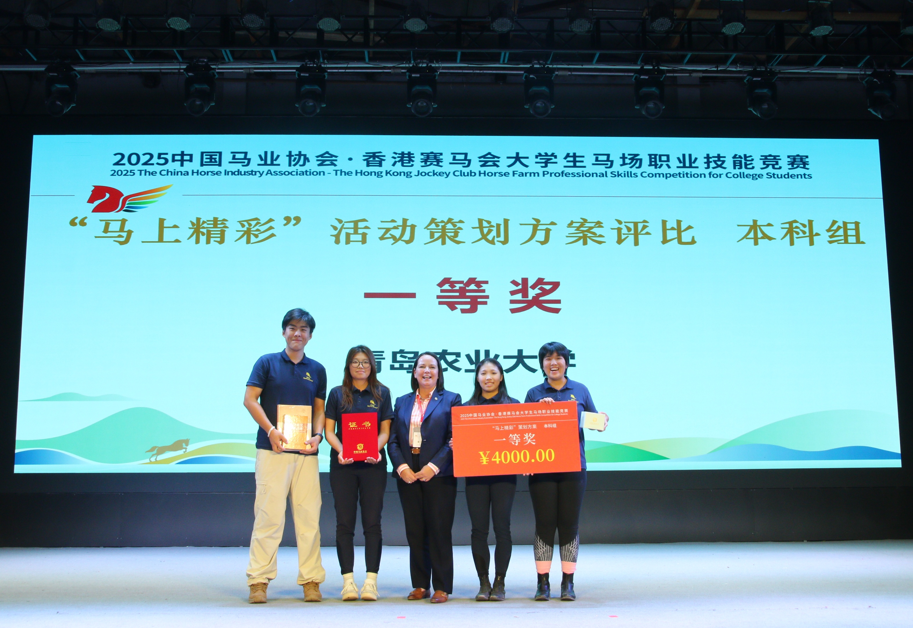 2025中国马业协会·香港赛马会大学生马场职业技能竞赛于9月25日至28日在内蒙古农业大学职业技术学院举办。青岛农业大学88858cc永利官网代表队荣获2项团体一等奖。大赛在本科组设立的2项团体第一,全部被我校斩获。