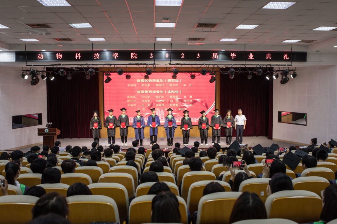 88858cc永利官网院长李光玉教授代表学院向2023届毕业生表示热烈祝贺,向悉心培养同学们的老师致以衷心的感谢。他指出,在毕业的同学中,有191人考取了硕士研究生,本科生考研率达54.89%,研究生毕业生共有48人,7人考取博士。其中,103名学生被浙江大学、中国农业大学等“双一流”院校和国家重点科研院所录取,动科1901、动科1902、动科1907班考研率超过68%,有三个宿舍的全体成员考取研究生。李光玉表示,希望毕业生牢记嘱托,不辜负母校和师长的厚望,弘扬“矢志三农、艰苦奋斗,开放包容、追求卓越”的青农精神,传承“立兴牧之志、强畜禽之基、保生态之优、谋民生之祉”的动科基因,斗志昂扬,奋发有为,不断取得新成绩,创造新辉煌!