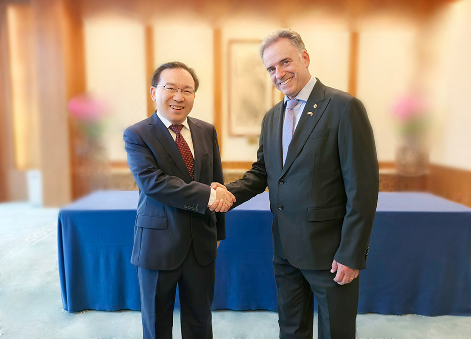 在中乌全面战略伙伴关系深化发展的关键节点,应国家主席习近平邀请,乌拉圭东岸共和国总统亚曼杜・奥尔西于2月1日至7日对中国进行首次国事访问。两国共同发表的《中华人民共和国和乌拉圭东岸共和国关于深化中乌全面战略伙伴关系的联合声明》中,明确将农业科技合作作为重点领域,强调在粮食安全与可持续利用粮食资源领域开展合作的战略意义。2月3日,在中乌两国元首的共同见证下,科技部部长阴和俊同乌拉圭国家科学与知识转化秘书处主任大卫·冈萨雷斯共同签署了《中华人民共和国科学技术部与乌拉圭东岸共和国国家科学与知识转化秘书处关于深化科技创新合作的谅解备忘录》。青岛农业大学积极响应国家战略号召,于2月4日在北京举办的中乌科学技术领域协议签约会上,签署重要农牧业科技创新合作协议,为中乌农业科技合作注入强劲动力。
